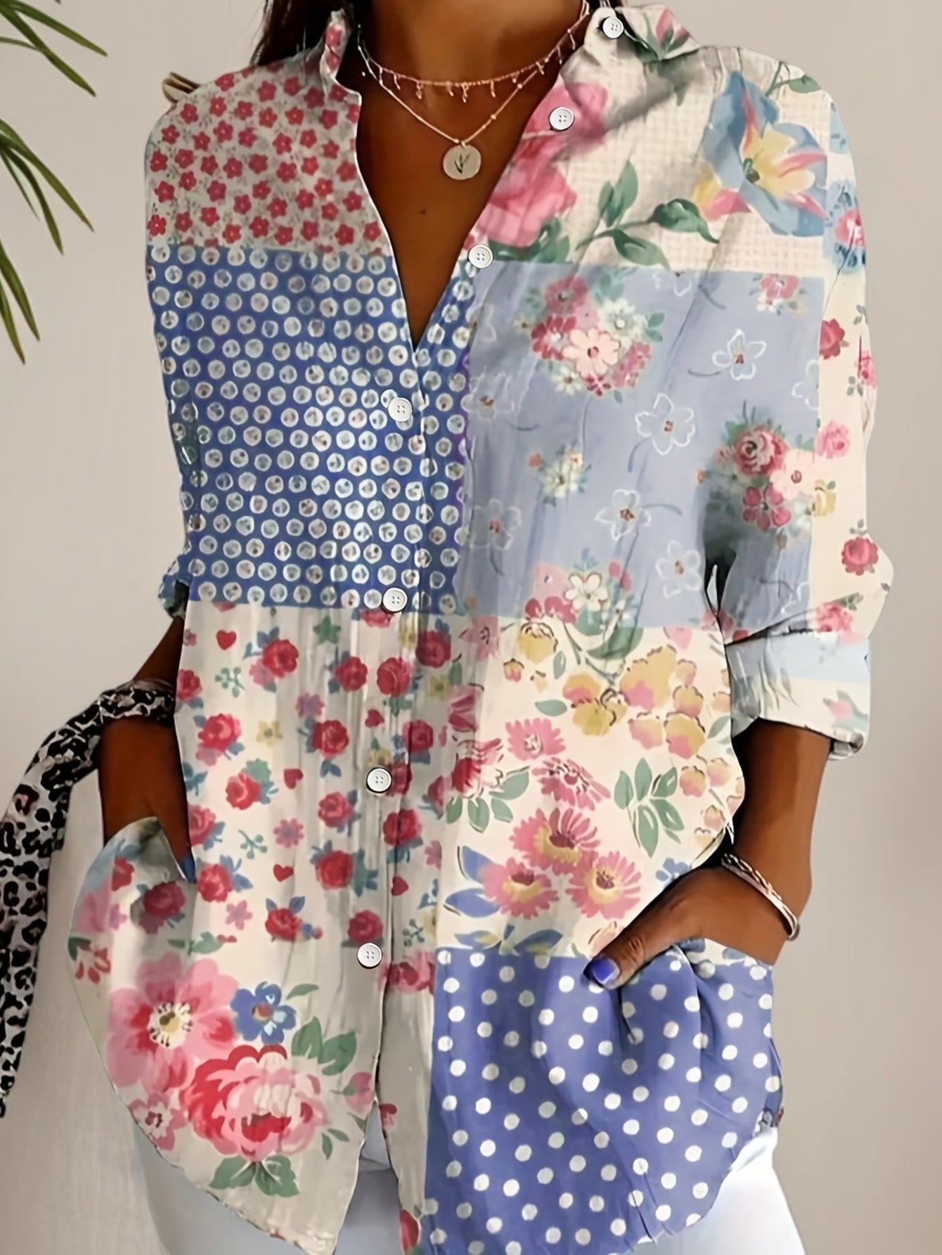 • Timeless boho charm —  meets modern elegance. With its flattering cut and subtle geometric print, this blouse keeps every outfit polished and stylish.